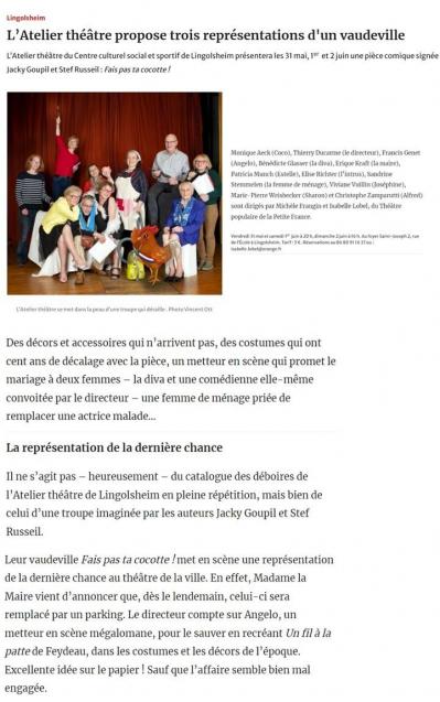 "La troupe des adultes prépare une pièce intitulée Fais pas ta cocotte"